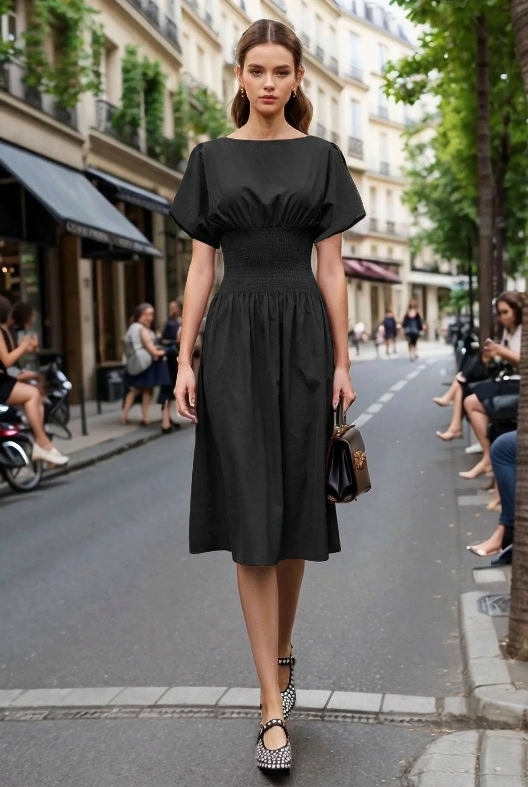 WAIST SMOCKED MIDI DRESS